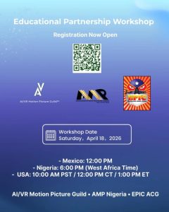 San Francisco, CA – 25/03/26: The AI/VR Motion Picture Guild, a 501(c)(6) nonprofit professional association focused on emerging media technologies, has announced a Global AI Storytelling and Prompt Engineering Workshop in educational partnership with the Association of Movie Producers Nigeria (AMP) and EPIC ACG FEST.
